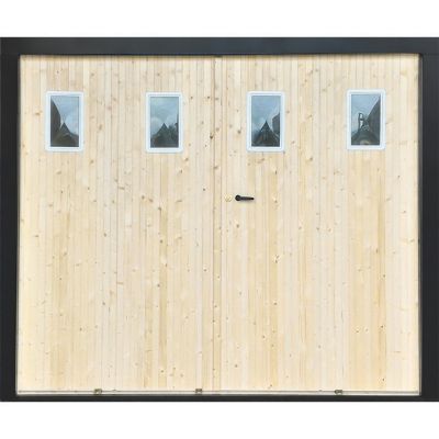Porte De Garage 4 Vantaux Sapin Hublots L 240 X H 200 Cm En Kit
